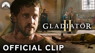 Gladiator II features some impressive action sequences. Every battle in the Colosseum is fantastic despite how historically inaccurate they may be. The monkey sequence showcases how skilled Hanno (Paul Mescal) is not only as a fighter but also in how he interacts with others. Then there's the rhino sequence that plays out much like Bugs Bunny’s interactions with Toro the Bull in the Chuck Jones-directed Looney Tunes short Bully for Bugs (1953). While those sequences are fairly believable, the shark sequence seems like pure fantasy and that’s why it’s so incredible. They fill the Colosseum with water and let sharks loose while the opposing gladiators try to survive the onslaught on boats. It’s also interesting to note that every major actor who dies in the film has a spectacular death. Not only that but these gruesome deaths get increasingly more grisly and memorable as the film progresses. These bloody triumphs rarely delve any deeper than someone getting shot with a bunch of arrows or a beheading or appendage severing of some kind. This level of brutality escalates throughout the film and eventually culminates with the most satisfying kill that takes two and a half hours to achieve. The performances fluctuate between being top-tier perfection and mediocre overacting. Denzel Washington is having the time of his life as Macrinus. He has the most interesting storyline and Denzel dances in every scene with a giddiness that is unparalleled. Joseph Quinn seems to be acting in an entirely different film than everyone else as Emperor Geta. His mannerisms are operatic and theatrical with his wide eyes that rarely blink, grand body language and hand gestures, and explosive line delivery. Pedro Pascal doesn’t do anything in Gladiator II as Marcus Acacius that he didn’t do in Game of Thrones apart from having more screen time. Much like how his character is written, Paul Mescal’s performance is muddled. The Hanno character and who he is is a poorly kept secret that consistently pulls the character in several directions. Hanno is vengeful at first before succumbing to being the hero of the film and the evolution isn’t earned. The writing and pacing of Gladiator II feel like the film drops Hanno’s fate in his lap halfway through, which he’s either forgotten about over two decades or never knew until the audience did. Connie Nielsen, one of the few returning actors from the original film, is awful in this. Her acting in Gladiator II always comes off as forced as her crying scenes are often portrayed as constipated grunts with crocodile tears. Her dialogue delivery is also strained and broken despite being given some of the most important sequences of character connections and reawakenings of sorts in the sequel. Calling Gladiator II action-heavy is misleading because the film drags between every fight sequence. The film is largely dull and difficult to indulge during its quieter moments. The film is gorgeous with its incredible set pieces, intricate costume design, and impressive use of infinitely numerous extras. Director Ridley Scott reunites with all of the set decorators (Sonja Klaus, Crispian Sallis, and Emilio Ardura) and costume designer (Janty Yates) that he worked with on Gladiator in 2000. From a visual standpoint, Ridley Scott's films are highly detailed masterpieces. Denzel Washington’s extravagant performance makes Gladiator II worthwhile. Still, not even its excessively violent action sequences, beautiful cinematography, and masterful set and costume design can save the sequel from how boring it is. Ridley Scott waited over twenty years to make a sequel that is more than twice as expensive as the original only to rehash the same story points.